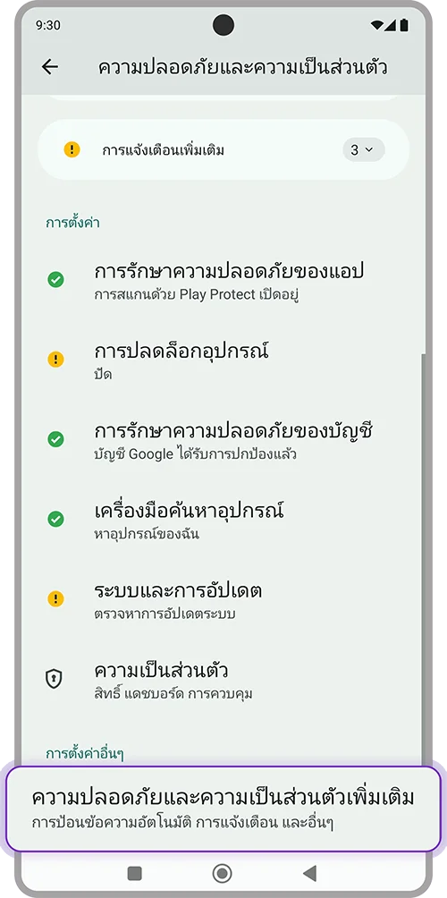 2. เลือก “ความปลอดภัยและความเป็นส่วนตัวเพิ่มเติม”