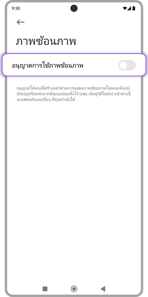 6. เลื่อนปิด “อนุญาตการใช้ภาพซ้อนภาพ” และเปิดแอป SCB EASY อีกครั้ง