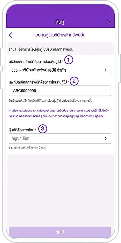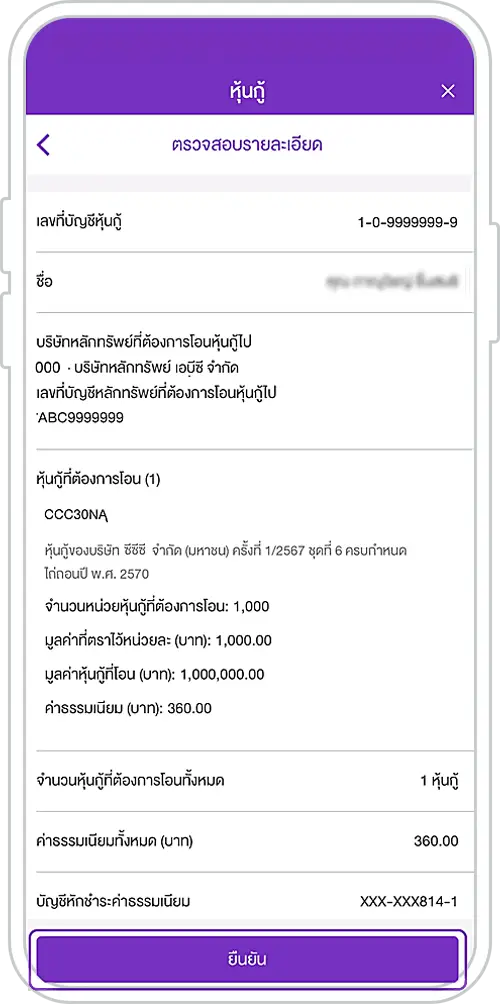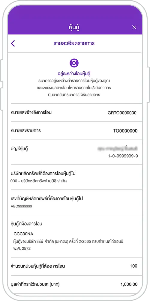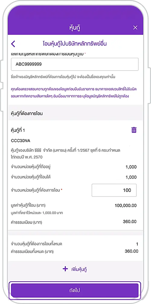โอนได้สูงสุด 5 หุ้นกู้ ต่อรายการ โดยกด