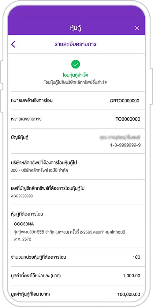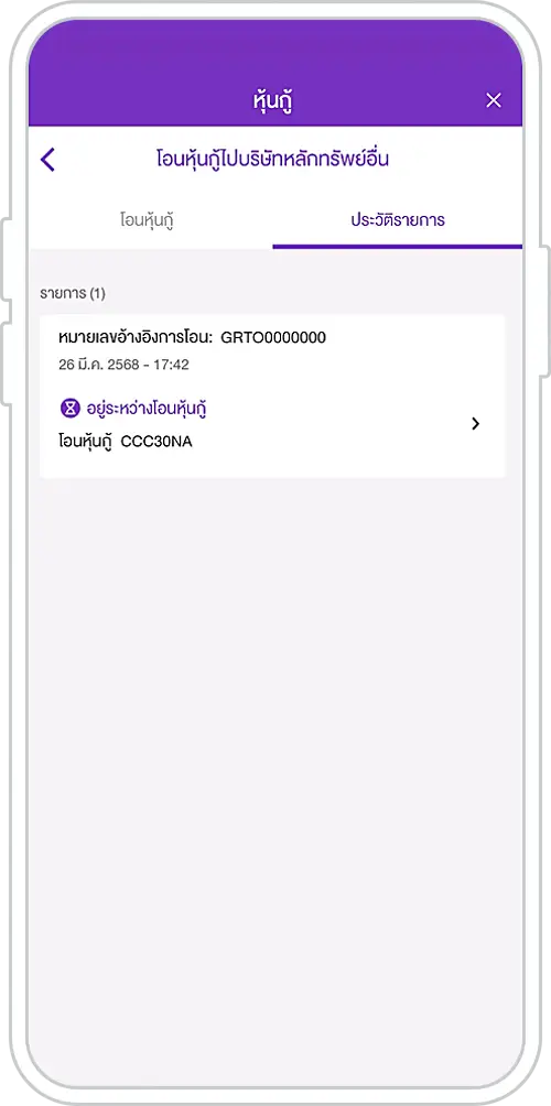 โอนหุ้นกู้ในหน้าประวัติรายการ