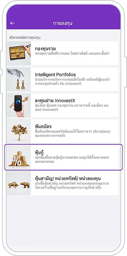 บัญชีหลักทรัพย์ และเลือกหุ้นกู้