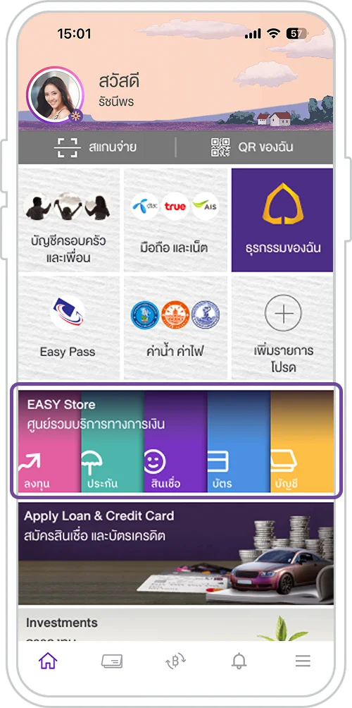 1. เลือกเมนู “EASY Store ศูนย์รวมบริการทางการเงิน”
