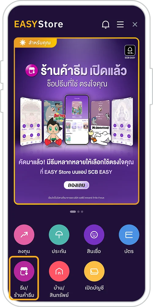 วิธีซื้อธีมบนแอป SCB EASY
