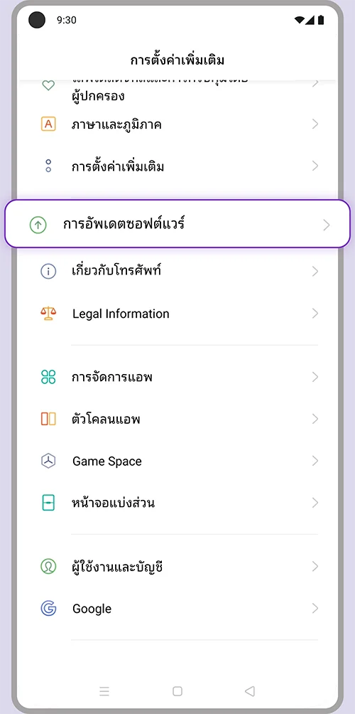 เลือกเมนู “การอัปเดตซอฟต์แวร์”