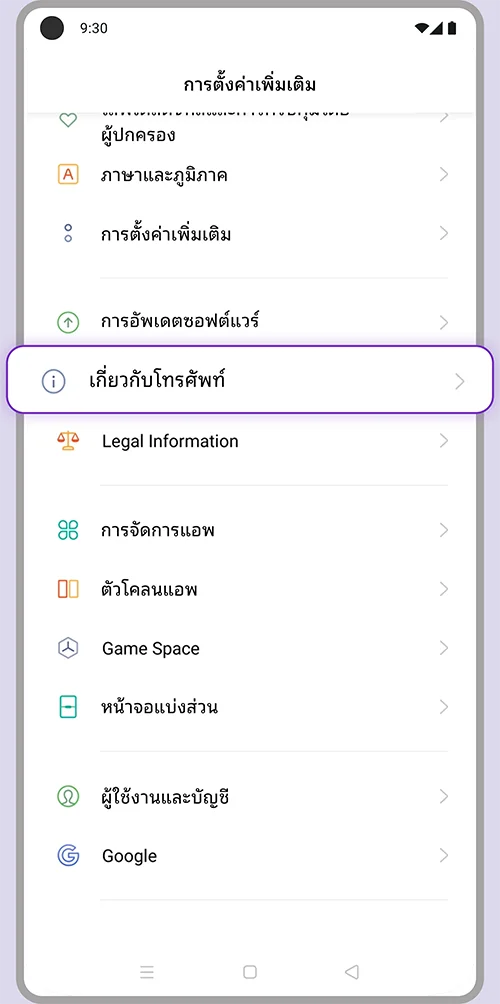 เลือกเมนู “เกี่ยวกับโทรศัพท์”