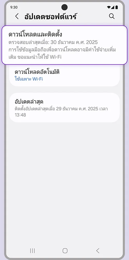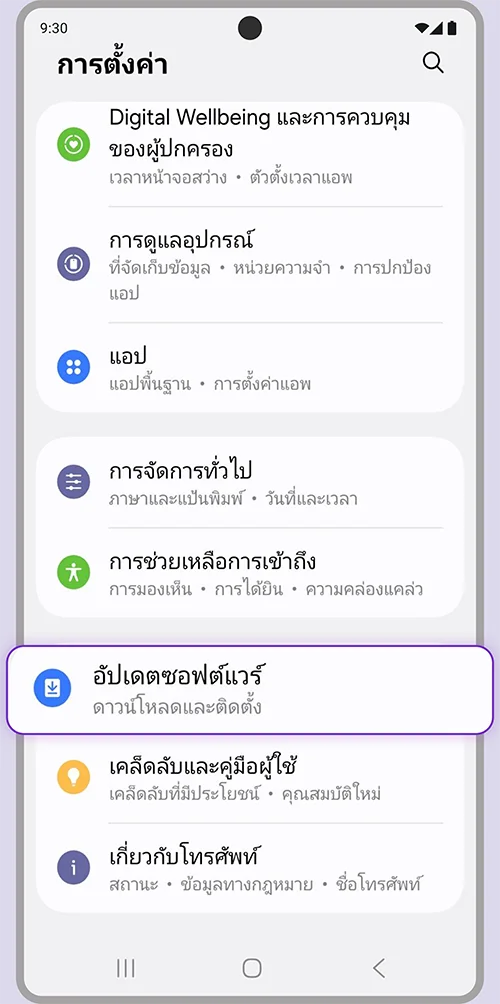เลือกเมนู “อัปเดตซอฟต์แวร์”