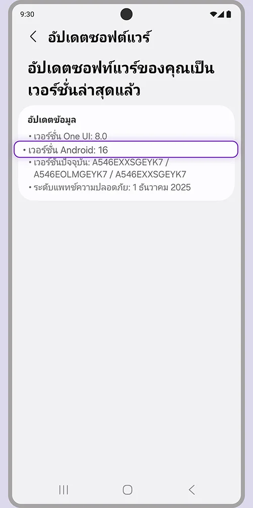 3. ตรวจสอบข้อมูลเวอร์ชัน Android ที่แสดงบนหน้าจอ