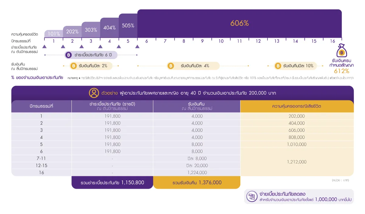 ประกันคุ้มครองชีวิต พร้อมรับเงืนคืนทุกปี