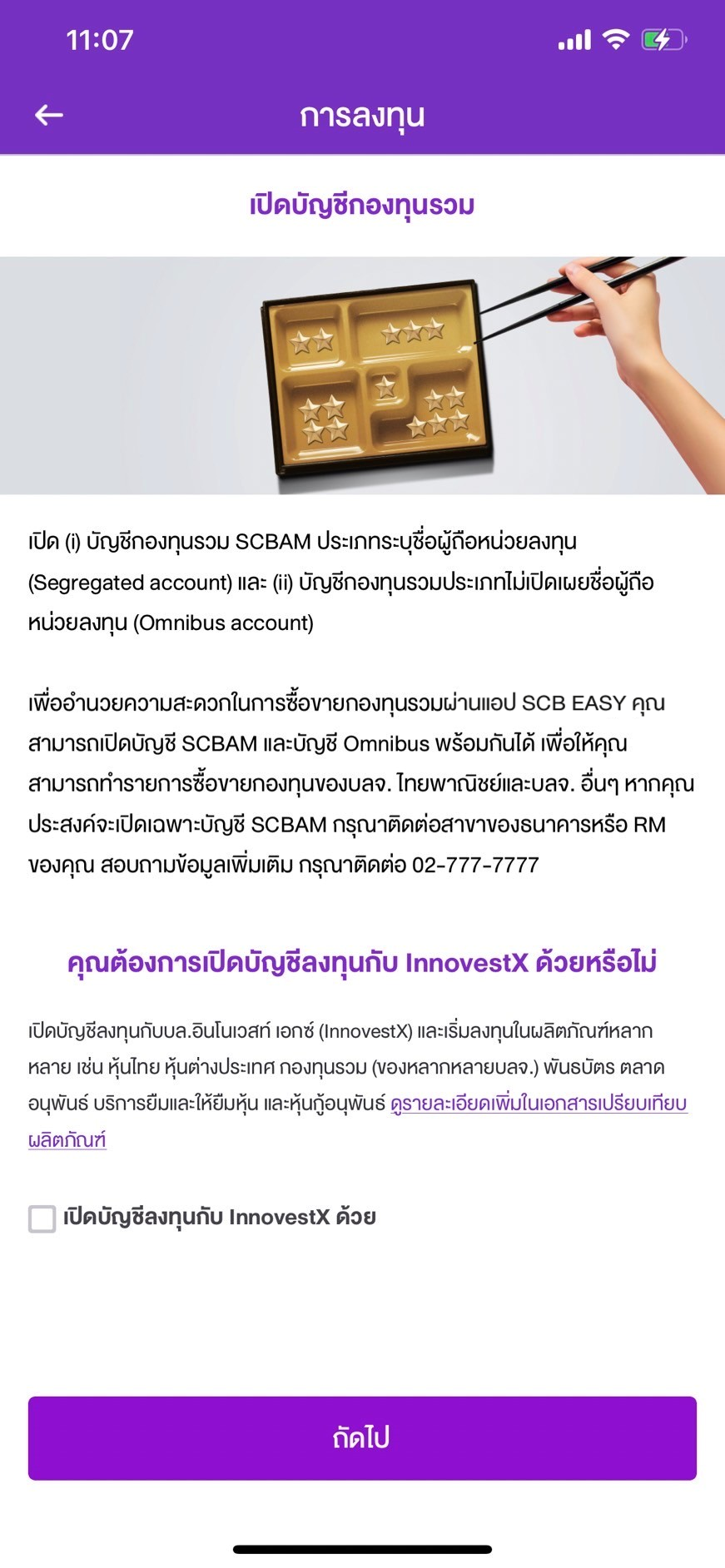 2. สำหรับลูกค้าที่มีบัญชีกองทุนบนแอป SCB EASY อยู่แล้ว และต้องการเปิดบัญชีซื้อ/ขายกองทุนบลจ.อื่น (Omnibus Account)