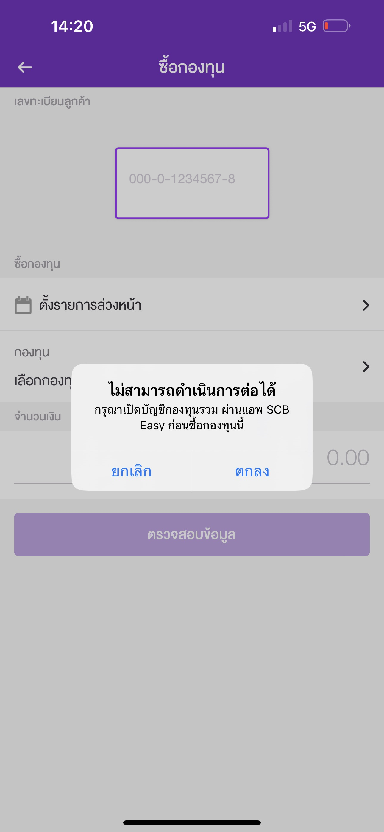 8. มีข้อความเตือนให้ท่านเปิดบัญชีกองทุนรวม เลือก “ตกลง”