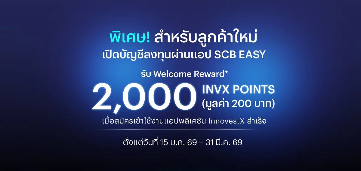 3. โดยลูกค้าต้องสมัครเข้าใช้งานแอปพลิเคชัน InnovestX สำเร็จ ลูกค้าจะได้รับ 2,000 INVX Points มูลค่า 200 บาท