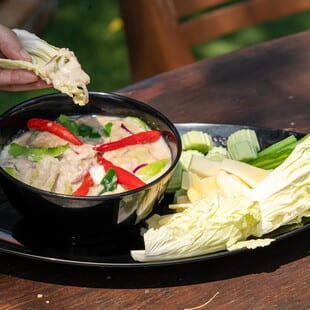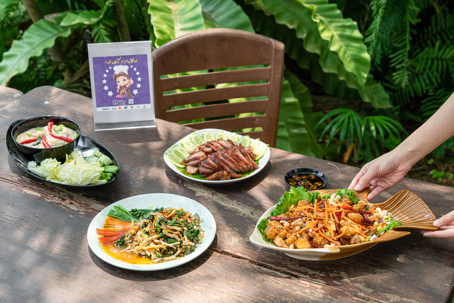 เป็นที่รู้จักกันดีสำหรับคนราชบุรีและนักท่องเที่ยว กับความอร่อยของอาหารไทยโบราณ รวมถึงซีฟู้ดของที่นี่ โดดเด่นเน้นเฉพาะวัตถุดิบสด ใหม่ อย่าง “หมูย่างอบน้ำผึ้ง” พระเอกของร้าน เลือกคัดเฉพาะส่วน หมักปรุงรสซึมเข้าถึงเนื้อ สัมผัสความหวาน นุ่ม กลมกล่อมได้แบบเต็มคำ จานนี้ใครไม่สั่งถือว่าพลาด! ตามด้วย “ปูหลน” อาหารไทยโบราณหาทานยาก เข้มข้นหอมมันกะทิ ทานคู่ผักสดนานาชนิด รสนัวถึงใจ หรือจะเป็นหอยหลอดผัดฉ่า, ปลากะพงทรงเครื่อง และอีกหลากหลายเมนู ให้ความอร่อยกลมกล่อม ทำให้ครองใจลูกค้ามานานถึง 10 กว่าปี ใครแวะเที่ยวราชบุรี ห้ามพลาดร้านนี้เด็ดขาด
