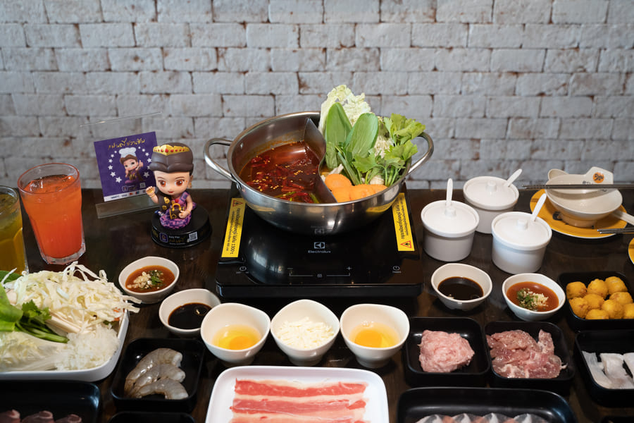 ชาวนนทบุรีห้ามพลาดกับสาขา เดอะวันบางบัวทอง ทางร้านมีน้ำซุปให้เลือกถึง 6 สูตร ไม่ว่าจะเป็นซุปซิกเนเจอร์ ที่ทางร้านคิดสูตรเองอย่าง ซุปชาบูกู รสสัมผัสกลมกล่อมคล้ายราเมน แต่ถ้าใครอยากเพิ่มความเผ็ดร้อนให้ชีวิต ก็มีทั้งเผ็ดสดชื่นแบบไทย ๆ “ซุปแจ่วฮ้อน” หรืออยากเผ็ดลิ้นชาหอมน้ำมันพริกแบบจีนก็ต้อง “ซุปหม่าล่า” ในส่วนของเมนู ก็มีให้เลือกตามราคา เพราะทางร้านมีทั้งบุฟเฟ่ต์ และ a la carte มาทั้งที ก็ต้องจัดบุฟเฟ่ต์ ราคา 389 เลือกทานได้ทุกอย่างที่มีในร้าน ไม่ว่าจะเป็นเนื้อออสเตรเลีย ริบอาย ใบพาย หรือซีฟู้ดก็แน่น แถมไอศกรีมยังตักได้ไม่อั้นอีกด้วย สายชีสก็มีให้สั่งแบบจุใจ จะรังสรรค์เมนูอะไรก็สนุก “ข้าวผัดกระเทียมหน้าเนื้อ ซีฟู้ด” กินได้เน้น ๆ ไม่ต้องกลัวหมด หรือจะเป็น “สามชั้นชีสลาวา” ก็เด็ด อย่าลืมแวะมาลองกันนะชาวนนท์ ร้านอัธยาศัยดีมาก พร้อมให้บริการทุกคนเต็มที่