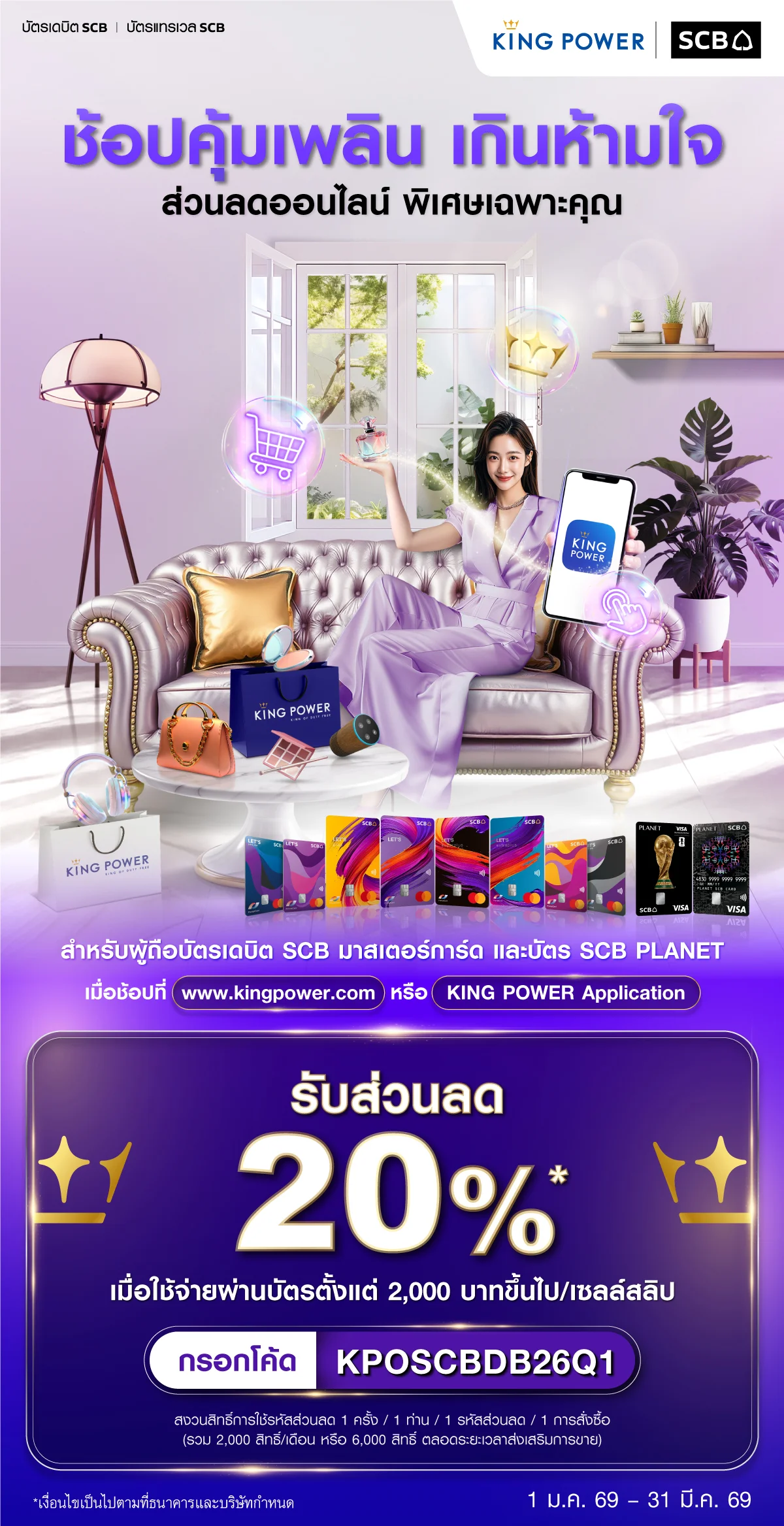 รับส่วนลด 20% เมื่อใช้จ่ายผ่านบัตรตามเงื่อนไขที่ KING POWER กำหนด