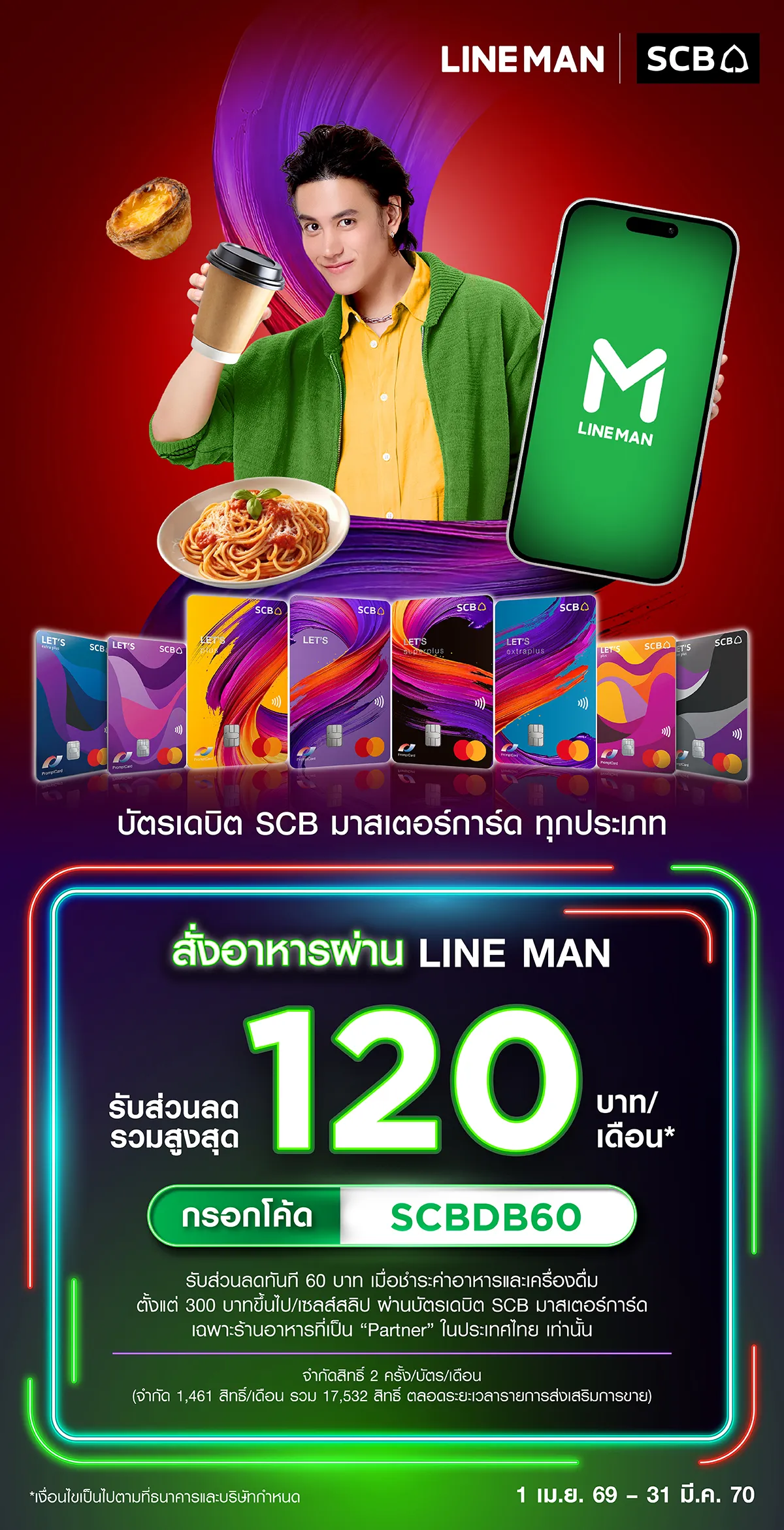 รับส่วนลดสูงสุด 120 บาท เมื่อสั่งอาหาร/เครื่องดื่ม ผ่านแอป LINE MAN