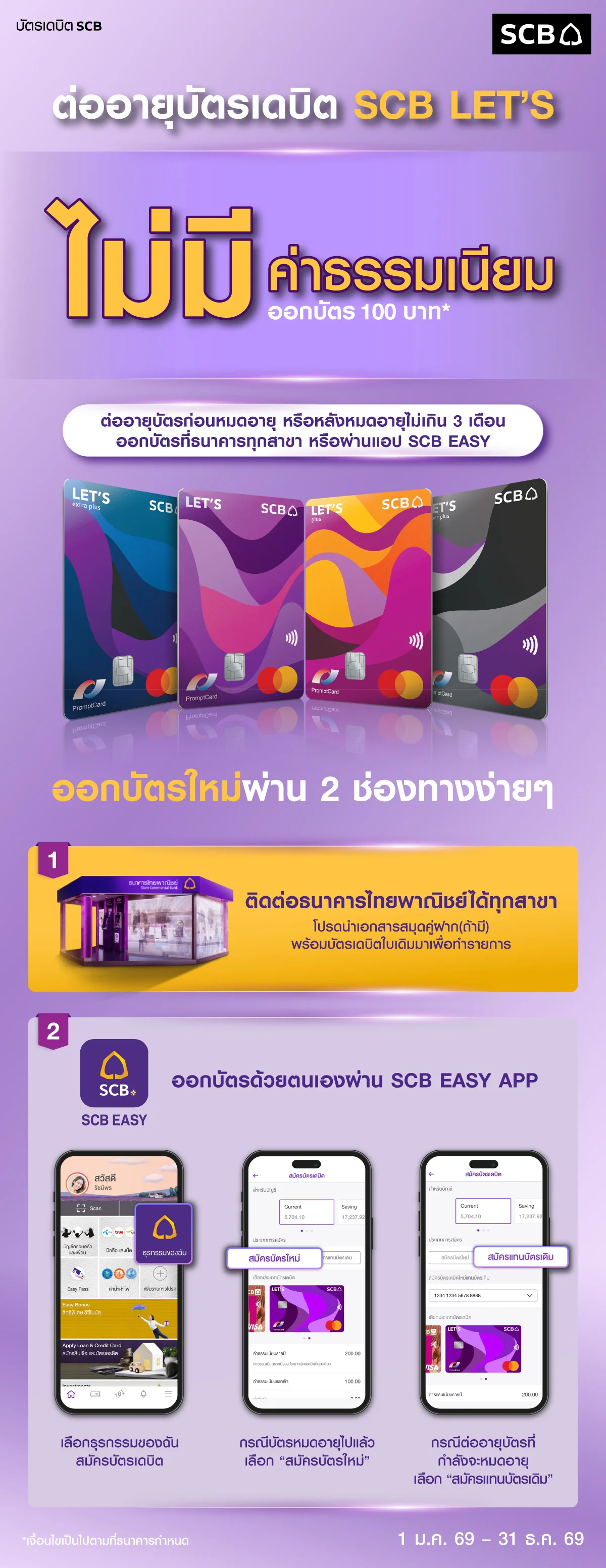 เงื่อนไขยกเว้นค่าธรรมเนียมออกบัตรใหม่กลุ่มลูกค้าบัตรเดบิต SCB มาสเตอร์การ์ด ที่บัตรจะหมดอายุตามเงื่อนไขที่ธนาคารกำหนด