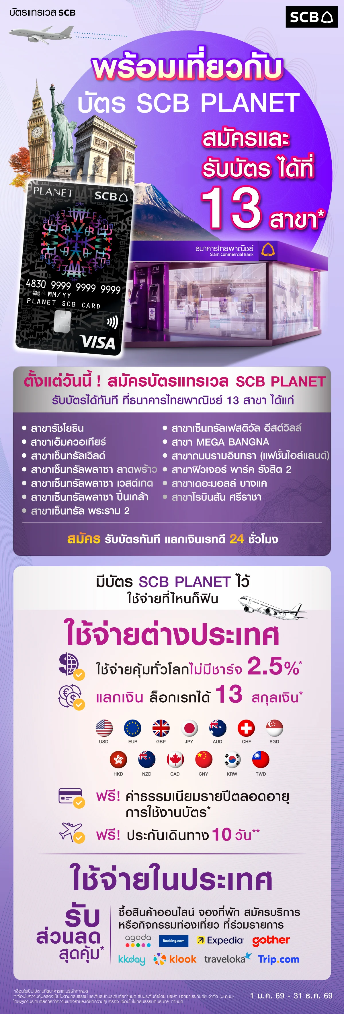 สมัครบัตร PLANET SCB รับบัตรได้ที่ 13 สาขา