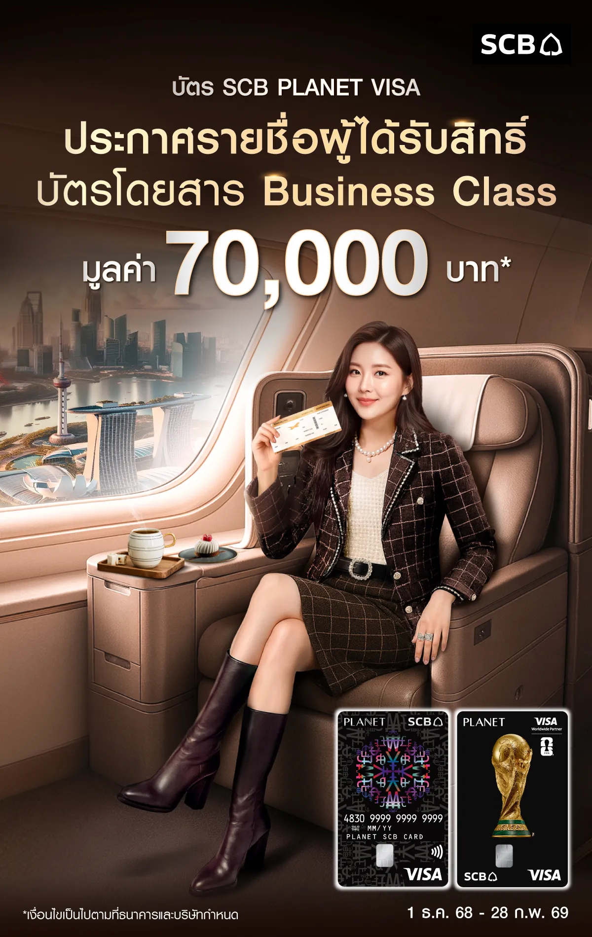 บัตร SCB PLANET VISA มอบบัตรโดยสาร Business Class ฟรีมูลค่า 70,000 บาท*