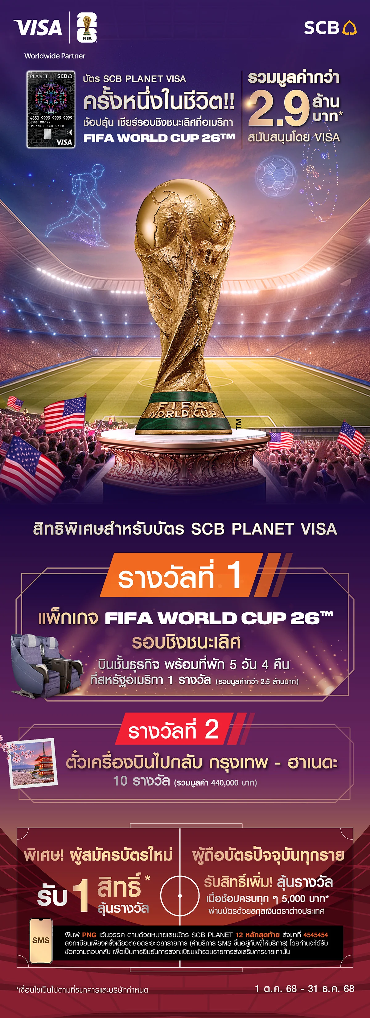รายละเอียดและเงื่อนไขรางวัลที่ 1 : บัตรเข้าชมการแข่งขันรอบชิงฟุตบอล FIFA 2026 พร้อมแพ็กเกจหรู 5 วัน 4 คืน ที่ประเทศสหรัฐอเมริกา