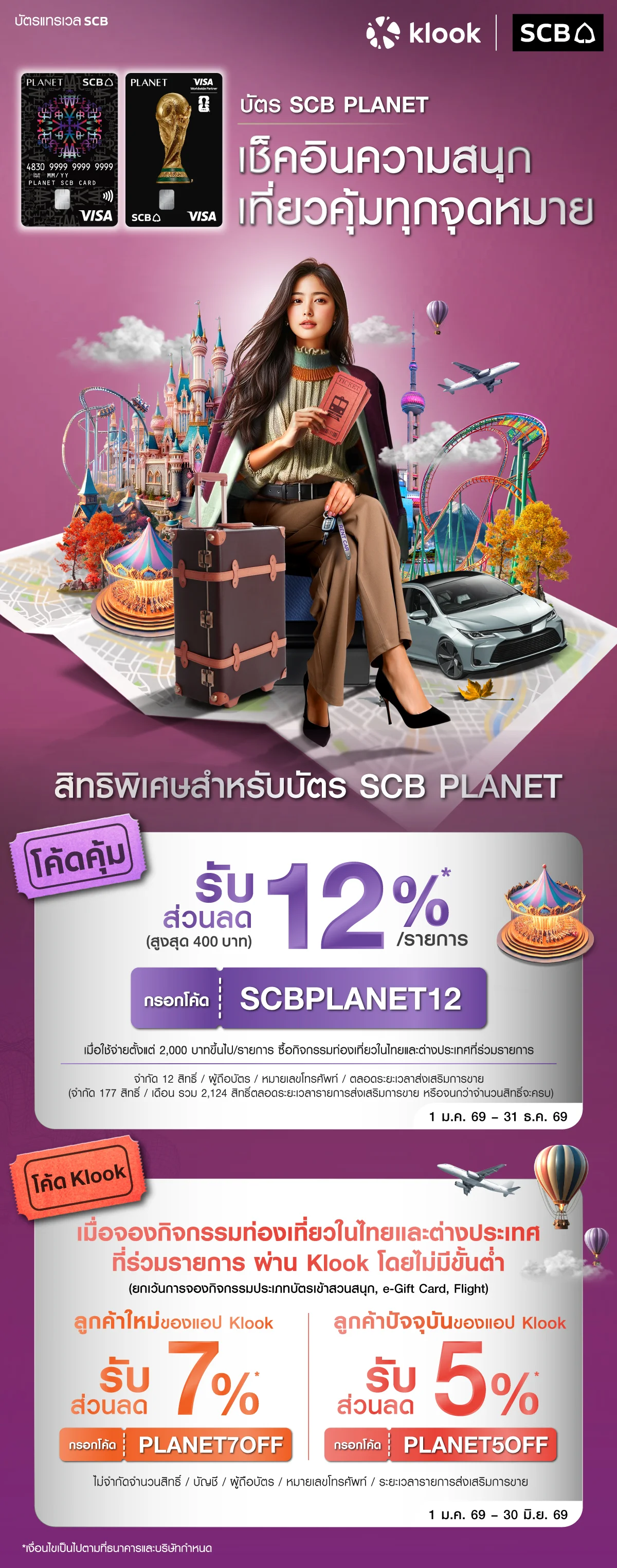 Klook x PLANET SCB รับส่วนลดสูงสุด 400 บาท / เดือน