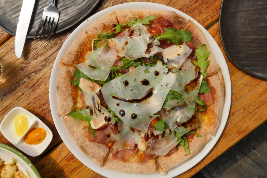 เมนูต่อไป Prosciutto and Figs พิซซ่าอบร้อนๆ จัดเต็มด้วย Topping นานาชนิด โดยพระเอกคือ Parma Ham (Prosciutto คือ แฮมสไตล์อิตาเลียน) ส่วนนางเอกก็คือ ผลมะเดื่อสด (Fresh Figs) นอกจากนี้ยังมี Mozzarella, Rocket Salad และ Balsamic Caramel เห็นถาดใหญ่ๆ แบบนี้ ไม่ต้องกลัวว่าจะทานไม่หมด ความบางกรอบของแป้งพิซซ่าที่นี่ทานแล้วฟินมากๆ รู้ตัวอีกที ก็หยิบชิ้นสุดท้ายเข้าปากไปแล้ว