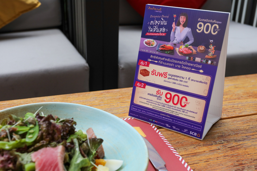สำหรับที่ร้าน Mozza by Cocotte เมื่อทานครบ 1,500 บาทขึ้นไป/เซลล์สลิป แล้วจ่ายด้วยบัตรเครดิต SCB รับฟรี! ของหวาน 1 ที่ มูลค่าเริ่มต้น 300 บาท (สามารถเลือกเมนูได้)