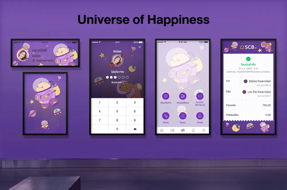 ยุคนี้การแต่งหน้าจอ (Phone Styling) ไม่ได้จบแค่ที่เคสมือถือหรือ Widget เท่านั้น แต่ "Inside the App" ก็สำคัญไม่แพ้กัน การเลือกใช้ธีมในแอป SCB EASY จึงถูกยกระดับให้เป็นมากกว่าแค่ความสวยงาม โดยคัดสรรศิลปินไทย (Local Artist) และคาแรกเตอร์ระดับโลก (Global IPs) นำมาสร้างสรรค์ธีมให้คุณเลือกใช้แบบ exclusive สะท้อนความชอบทางศิลปะของผู้ใช้งาน